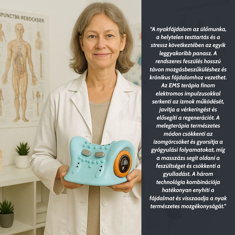 Most itt egy eszköz, ami támogatja a nyaki terület ellazítását és a jobb közérzet kialakítását – kíméletesen, természetesen, napi mindössze 15 perc használattal, otthon.